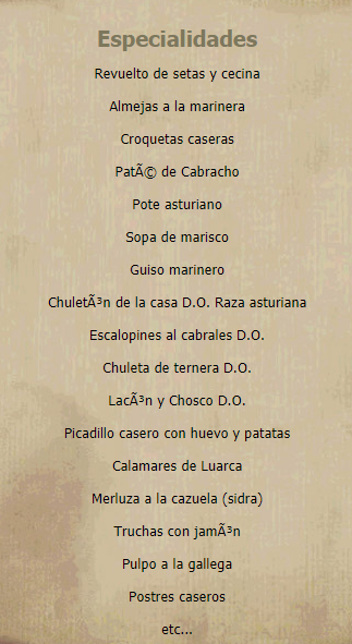 Cocina Tradicional Casera,Menú Peregrinos