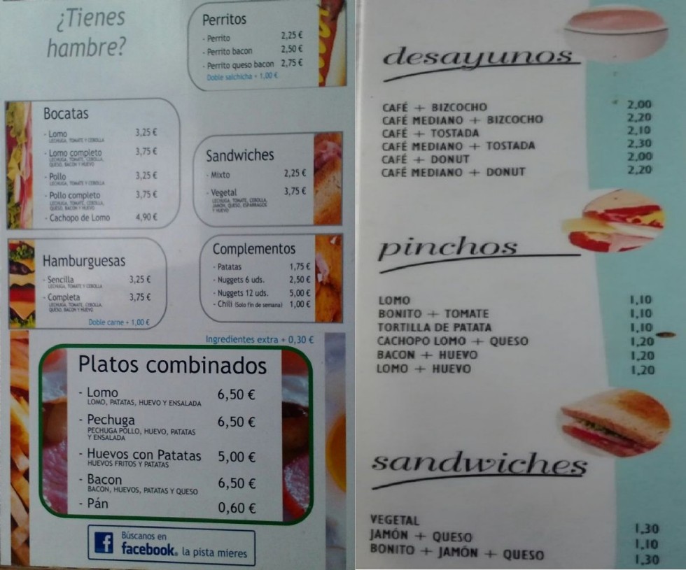 Platos combinados, hamburguesas, desayunos y meriendas