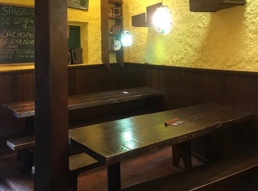Sidrería situada en un edificio medieval con comida típica Asturiana de tapas variadas.